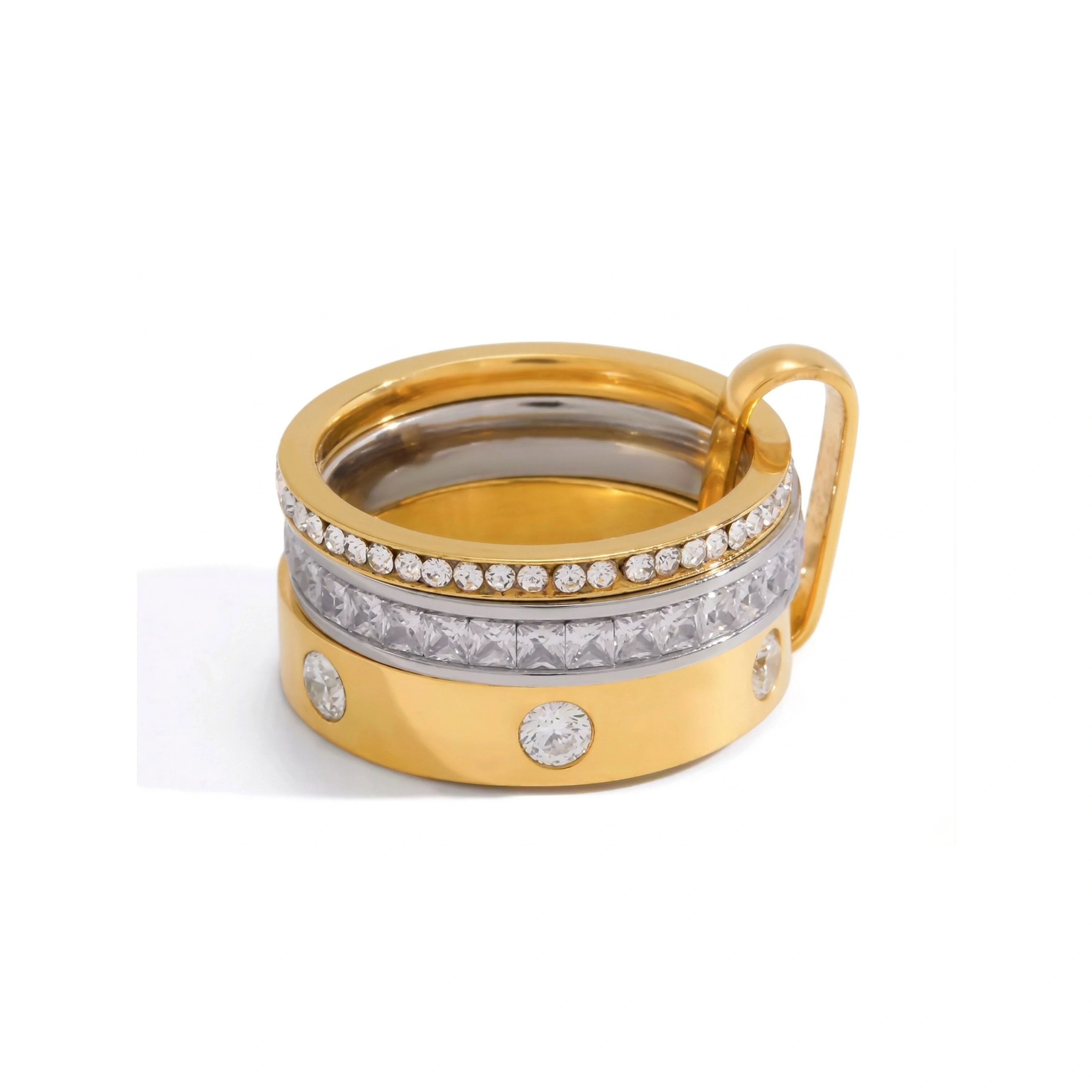 • Combinação de banho dourado e ródio branco