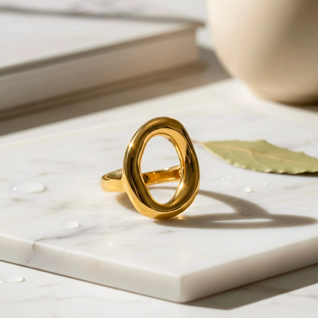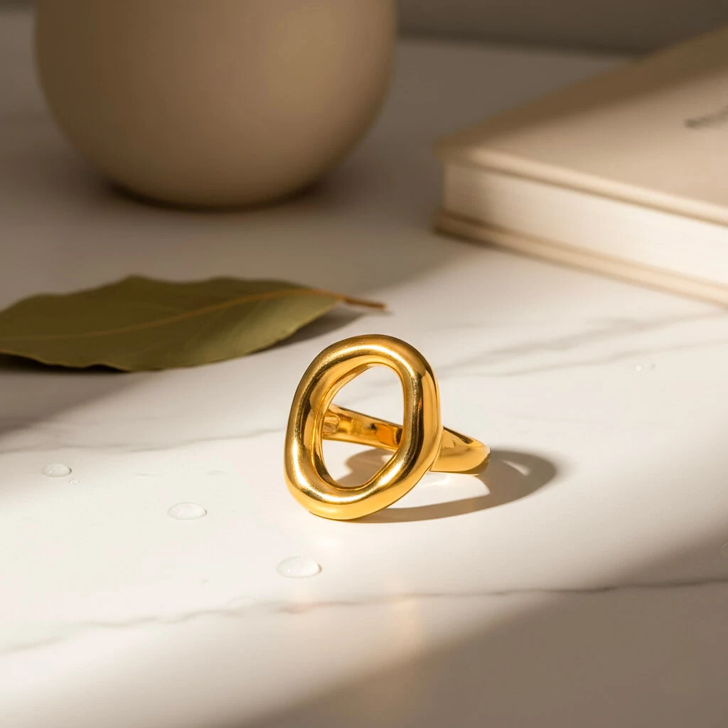 Anel Orgânico Vazado – Semijoia Banhada a Ouro 18k.