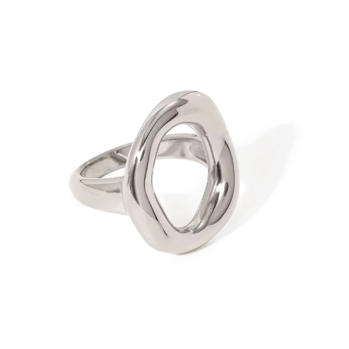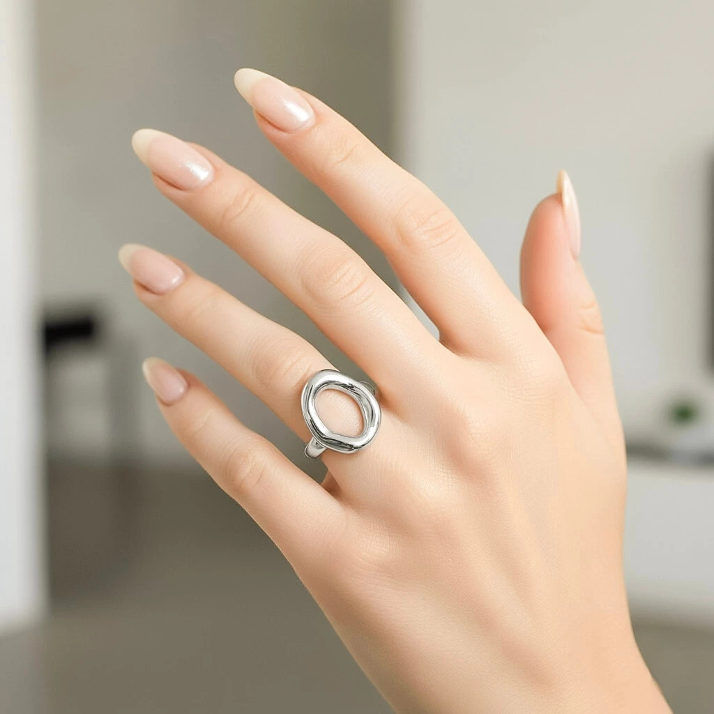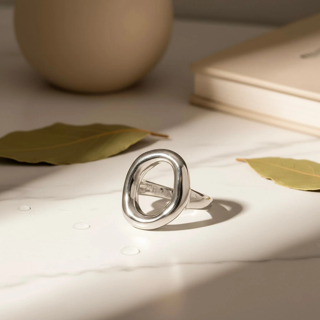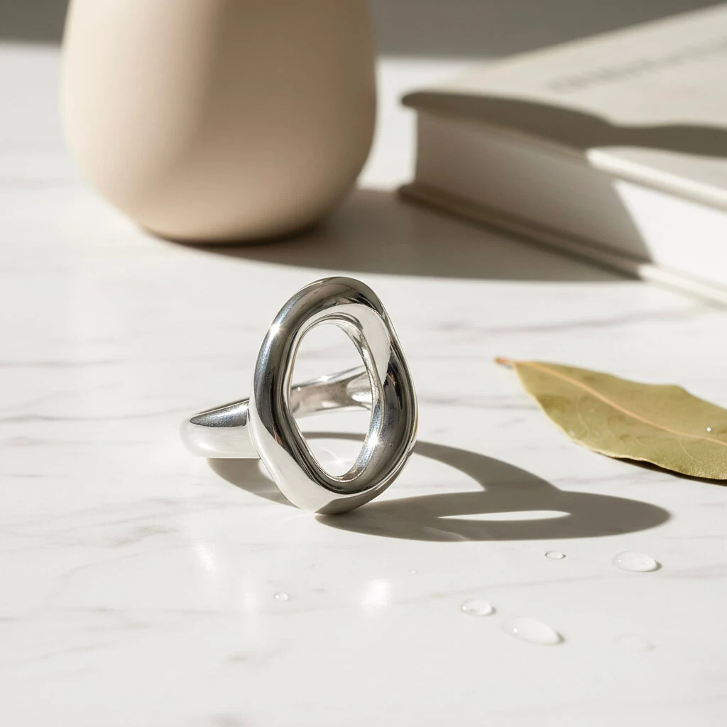 Anel Orgânico Vazado – Semijoia Banhada a Ródio Branco.