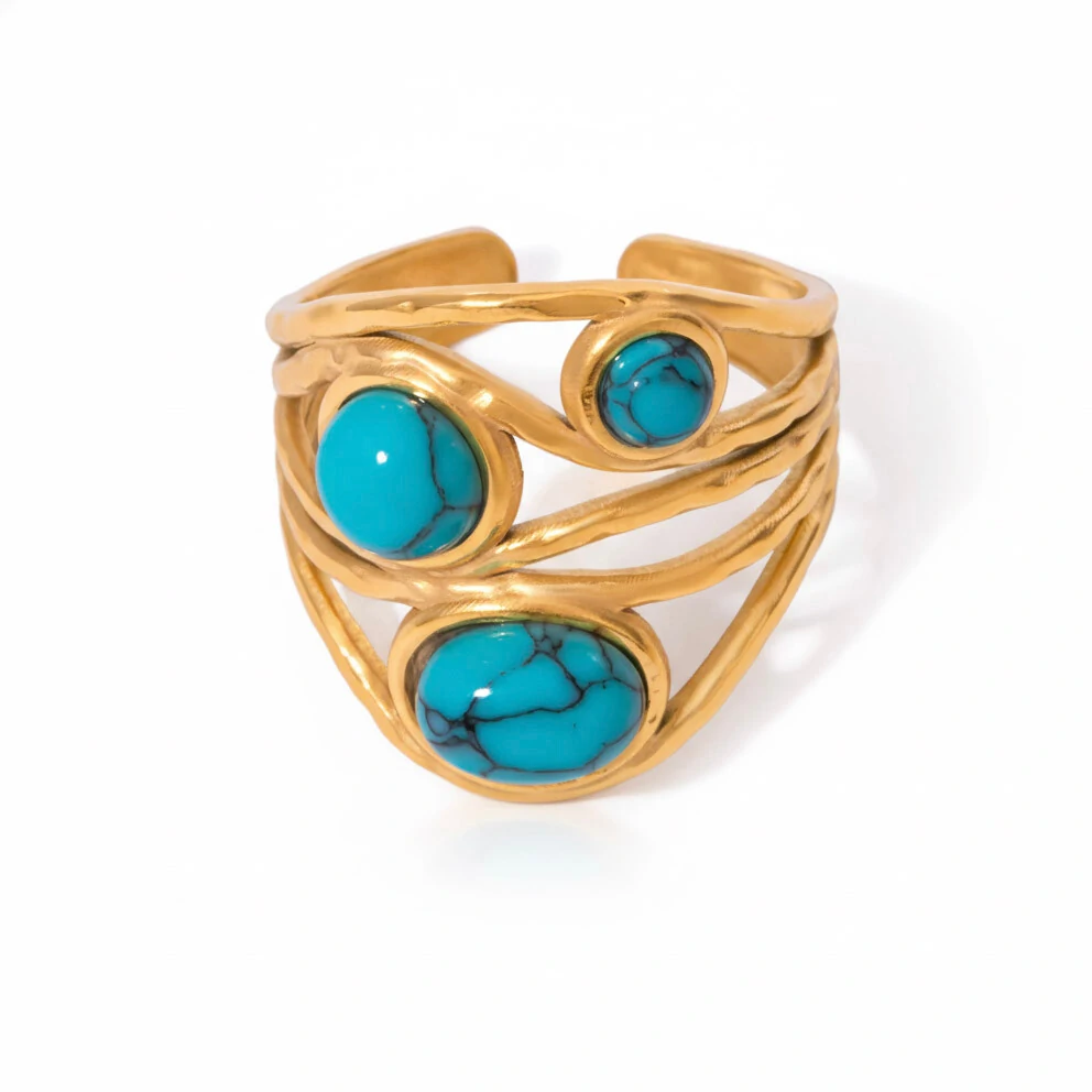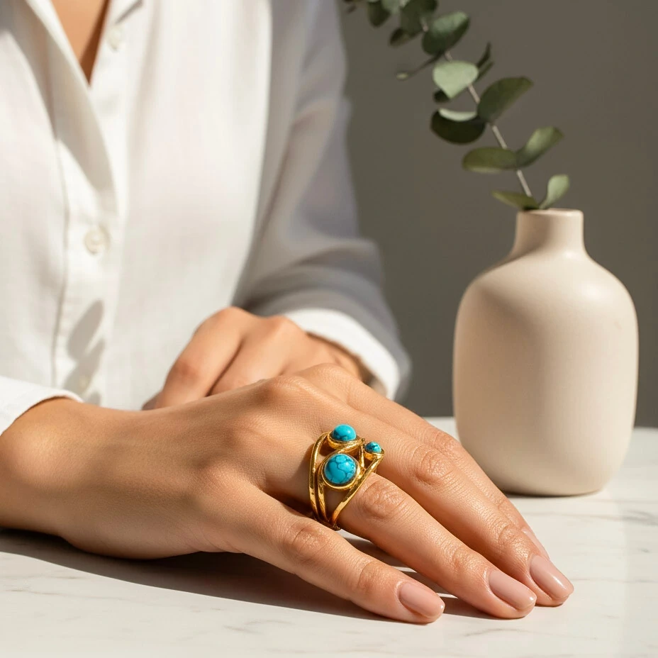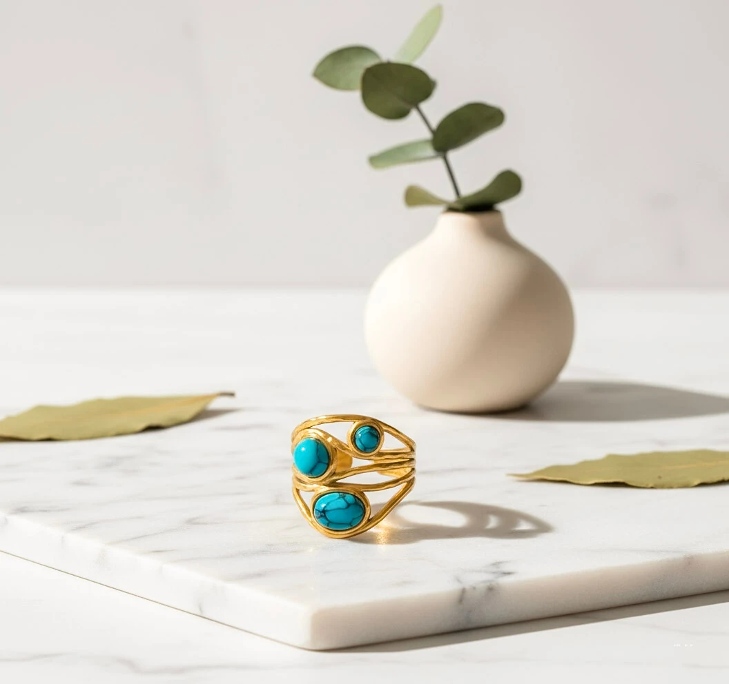 Anel Três Turquesas: O Impacto BOLD da Pedra de Cor no Verão