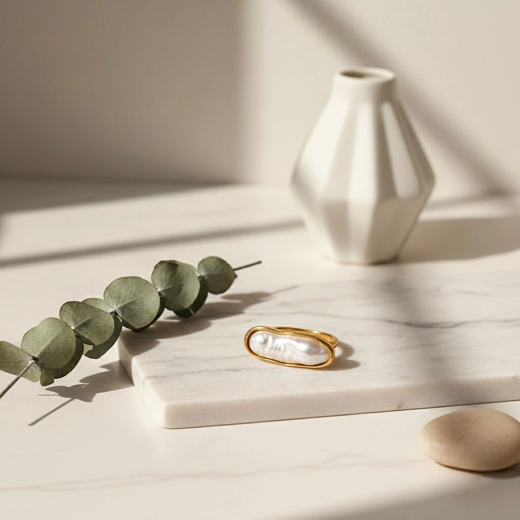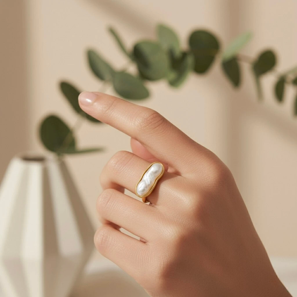 Anel Pérola Barroca Bastão: O Statement de Design que Valoriza a Mão