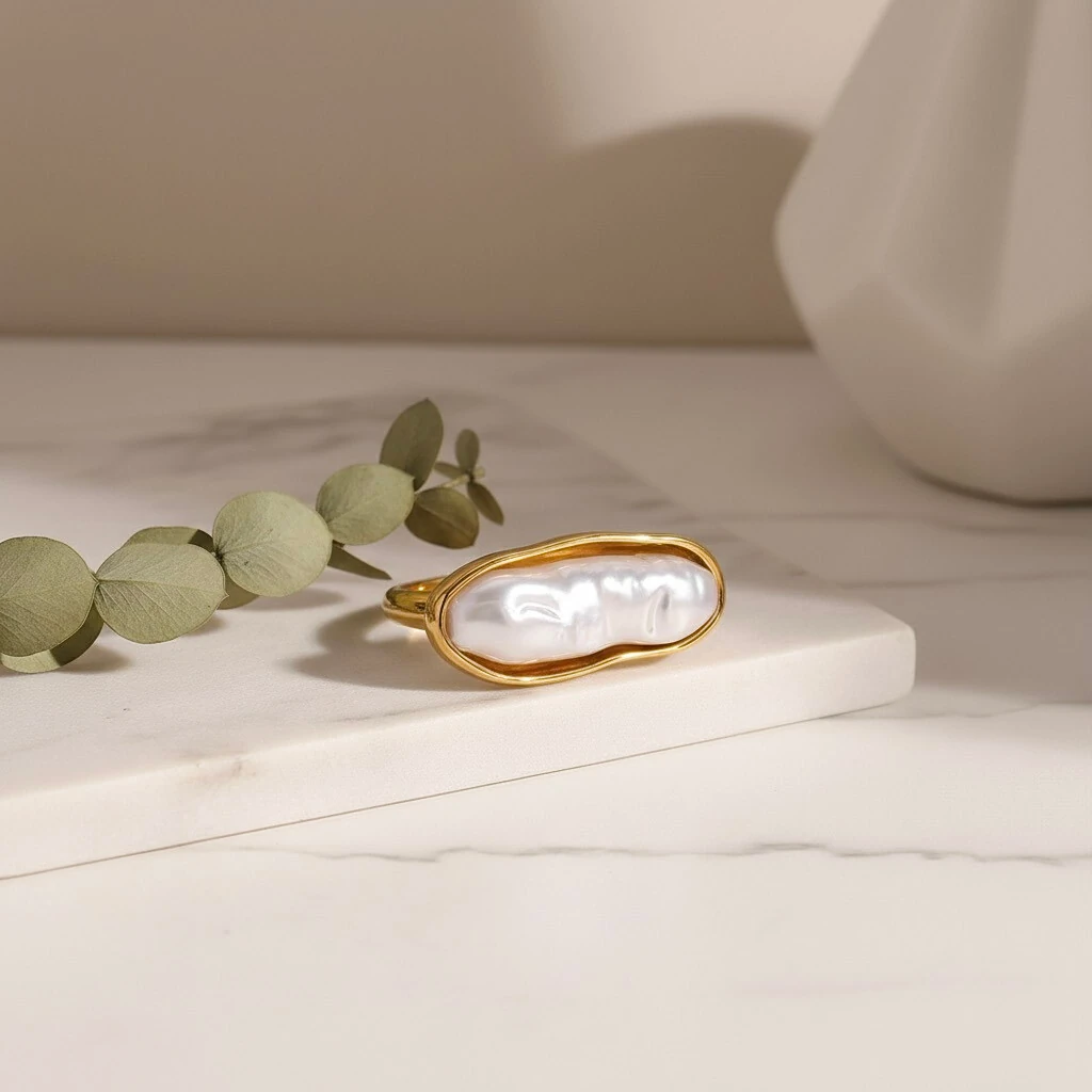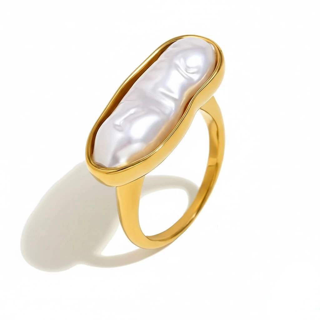 O Anel Pérola Barroca Bastão é uma peça Statement imponente, feita para ser o centro das atenções.