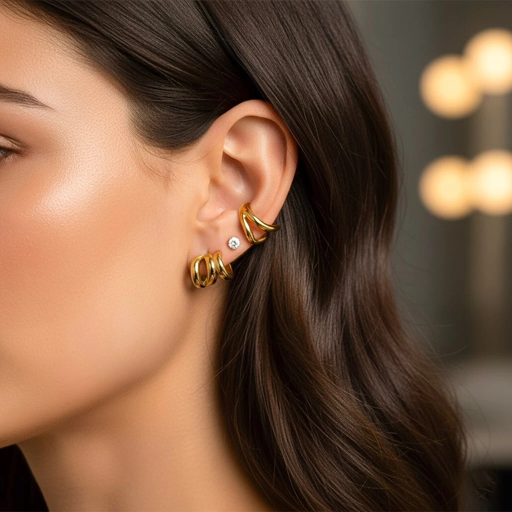 Brinco Argola Triple - Semijoia Banhada a Ouro 18k