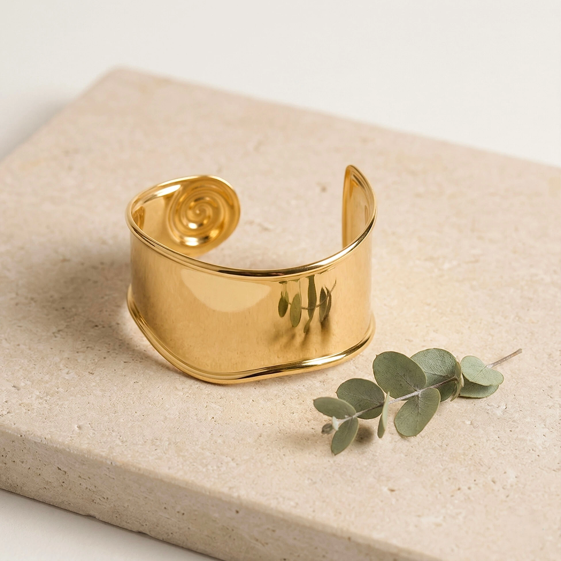 O Bracelete Espiral traz uma superfície ampla e polida,
