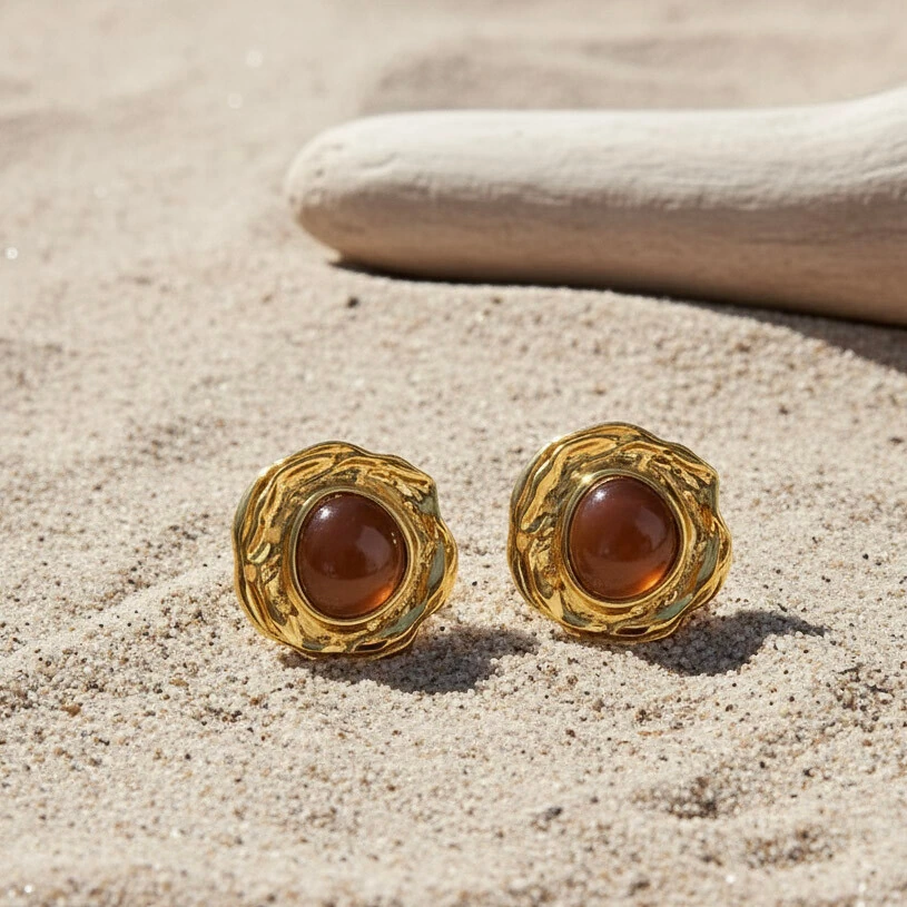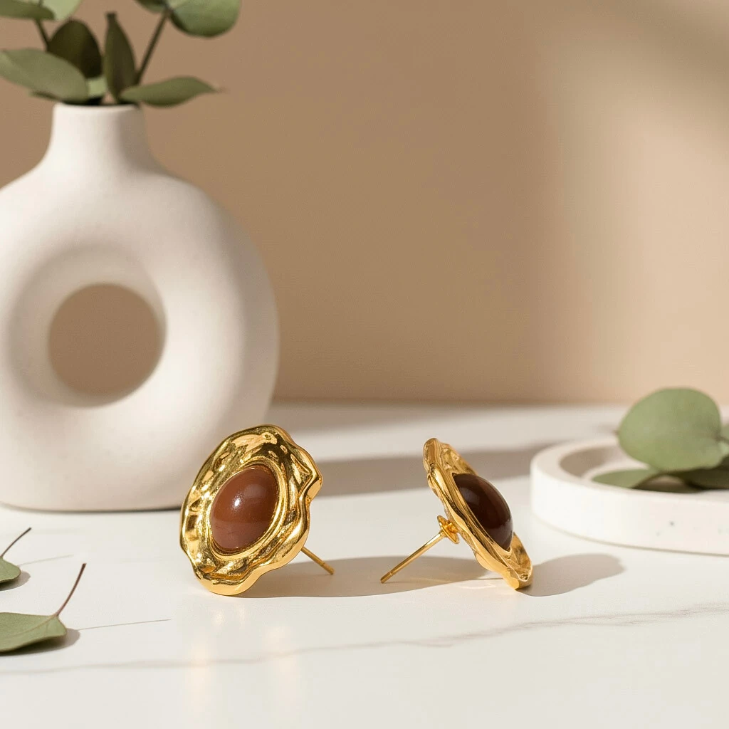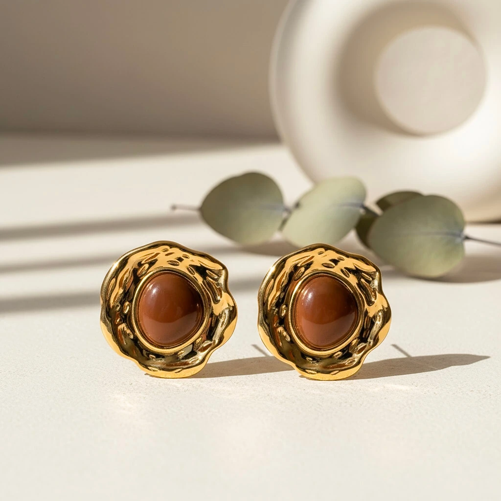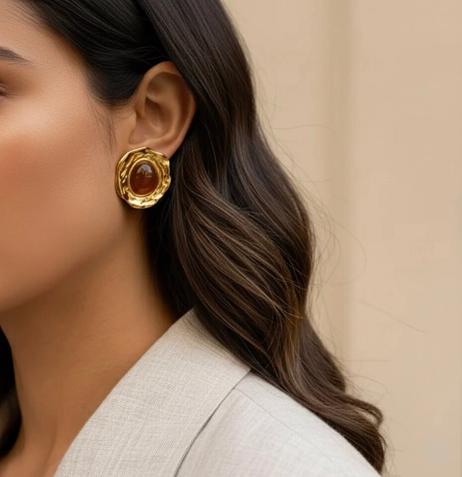Brinco Âmbar: A Riqueza da Pedra Terrosa no Statement Orgânico e Texturizado