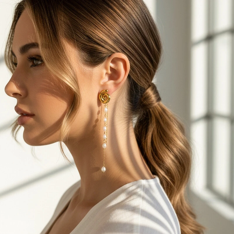 Brinco CASCATA: Elegância do Design Fluido com a Pureza das Pérolas Naturais