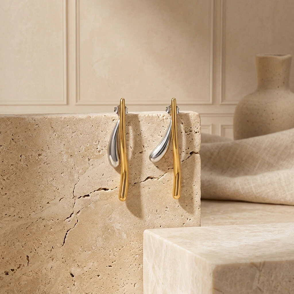 O mix de banhos deixa a peça mais interessante e fácil de combinar. Funciona tanto com outras peças no dourado quanto com prateado, sem esforço.
