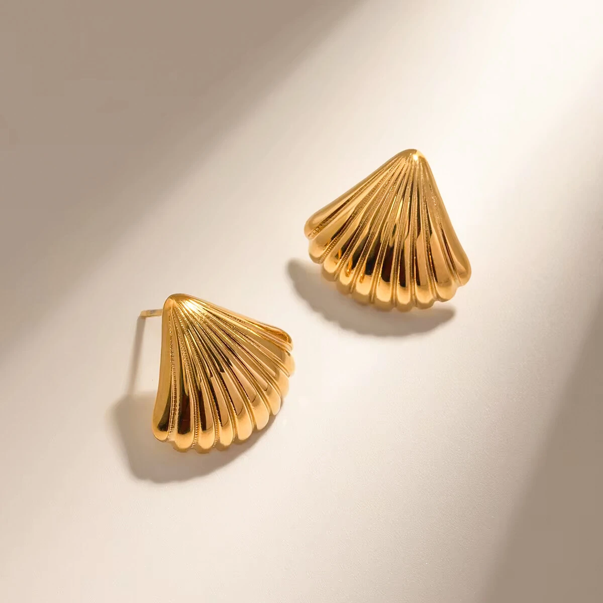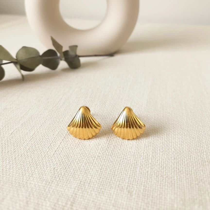 Design Escultural Único: O formato Bold da concha garante presença e um visual chique, mesmo sendo um brinco de pino pequeno.