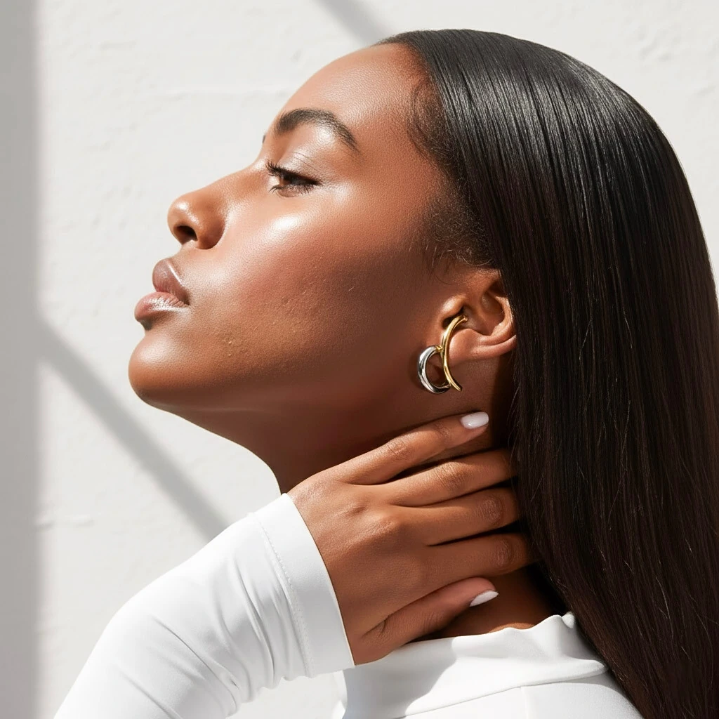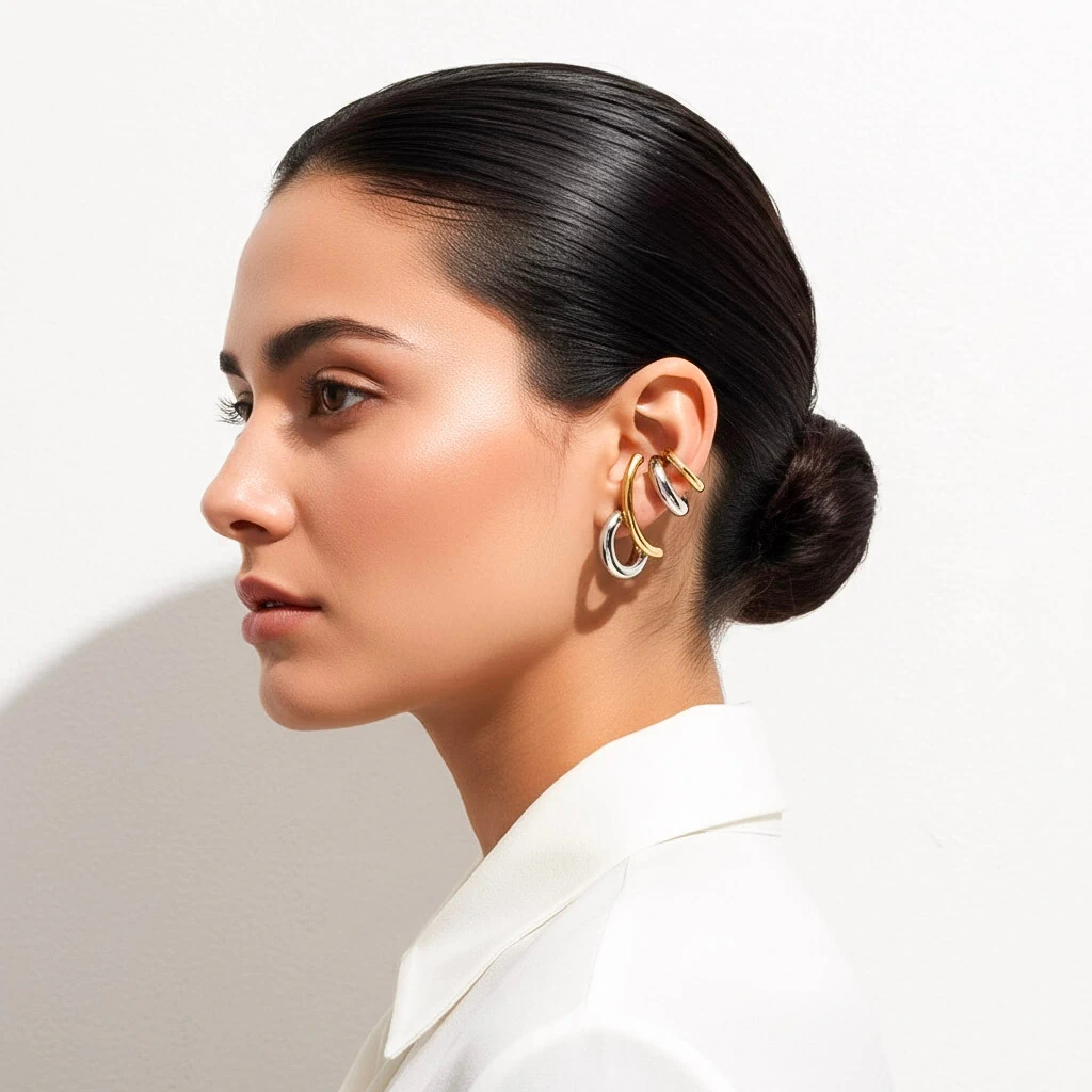 Brinco Ear Hook Dual Glam – a fusão perfeita entre arte e elegância.