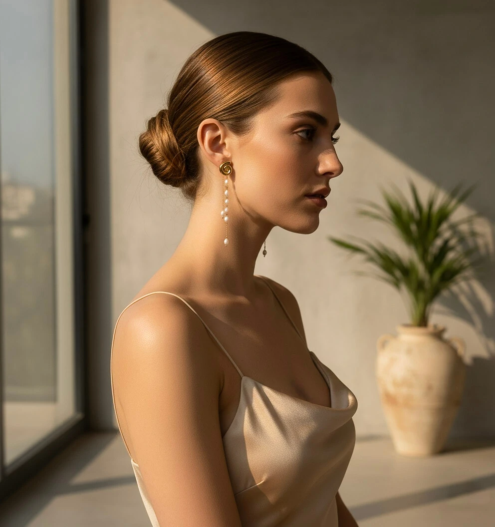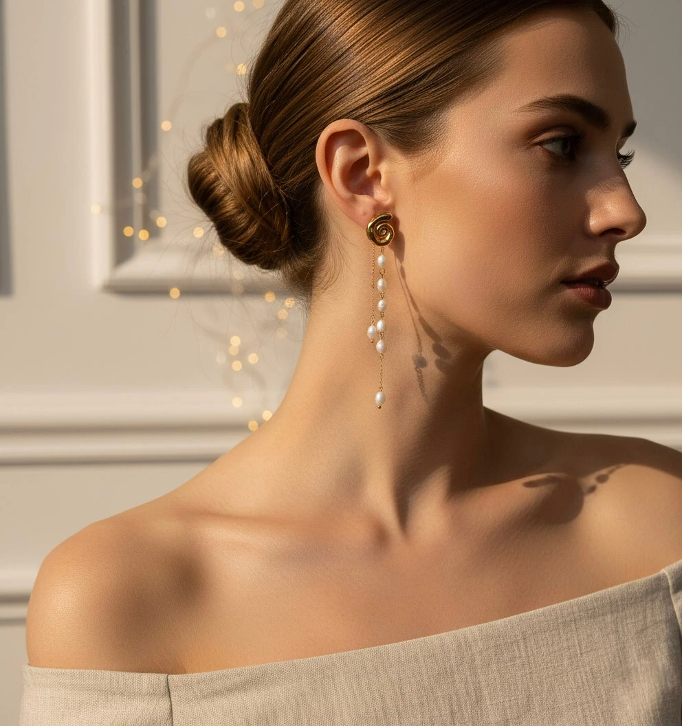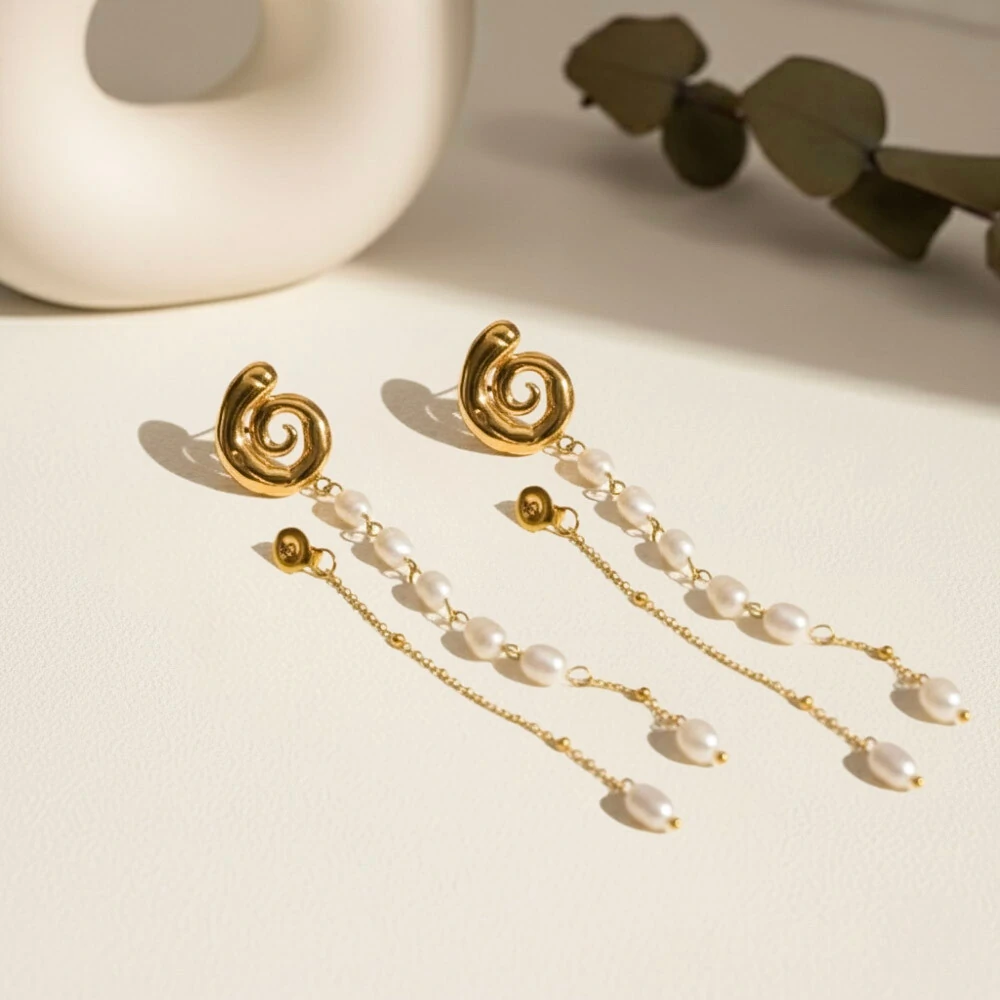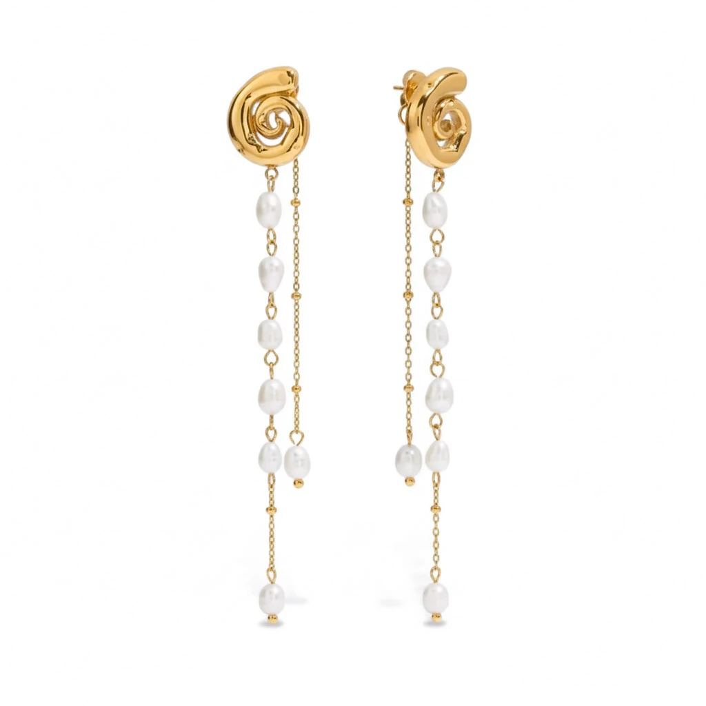 Brinco Espiral Longa: O Statement de 8cm com a Fluidez das Pérolas