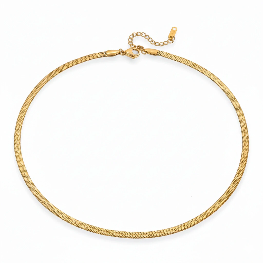 ele se ajusta perfeitamente ao pescoço, funcionando como um Choker e uma base robusta (Bold) para correntes mais longas.