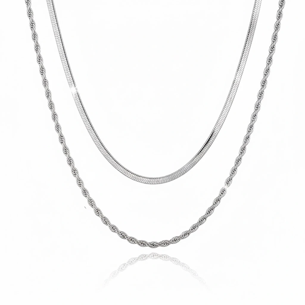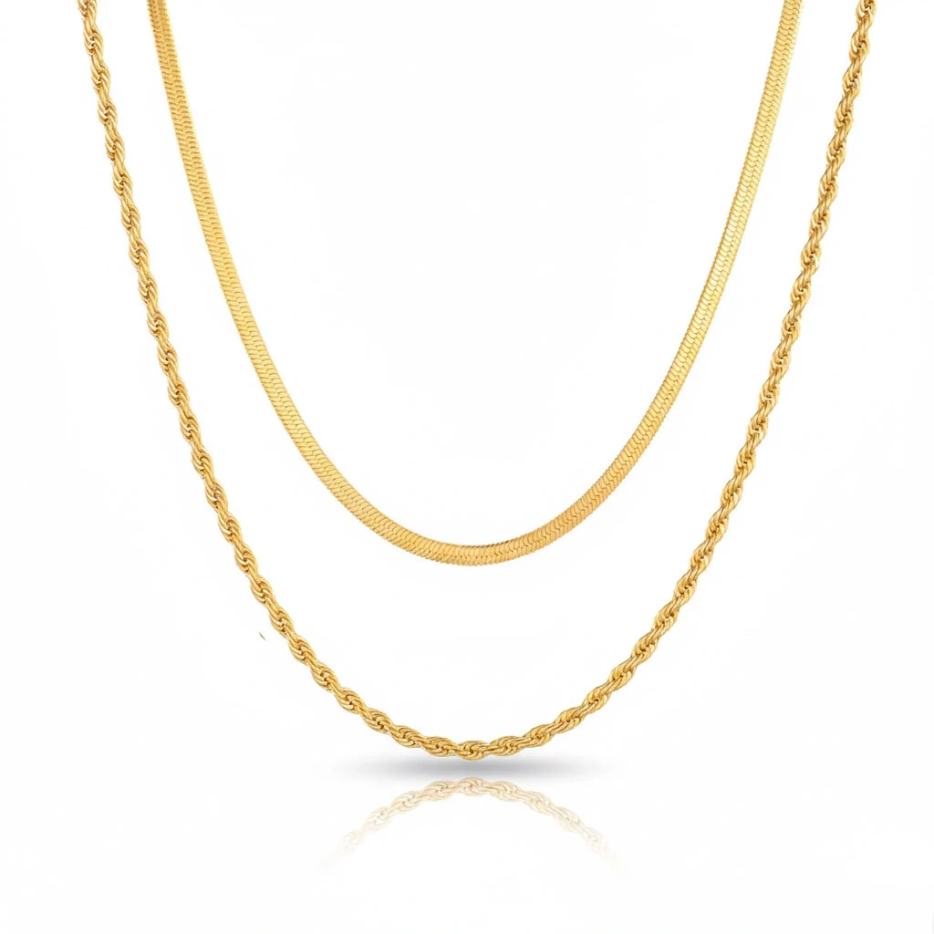 Dupla Colar Elise: Layering Perfeito com Contraste de Texturas.
