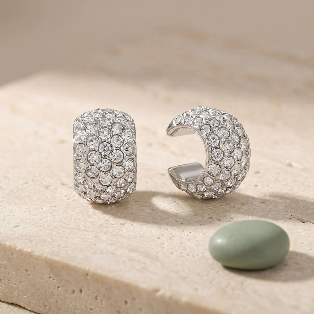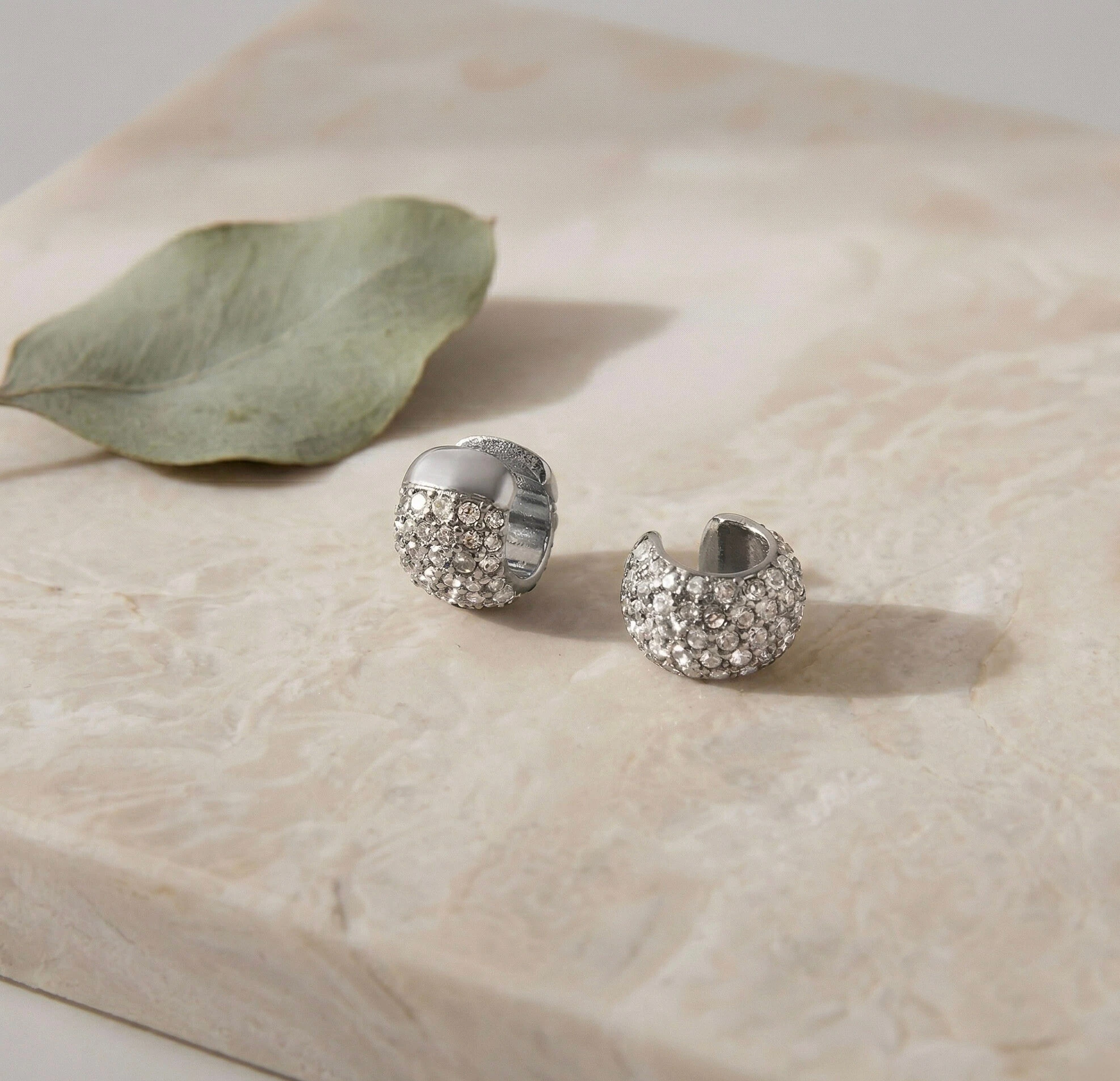 Piercing fake com acabamento cravejado que ilumina o visual com sofisticação.